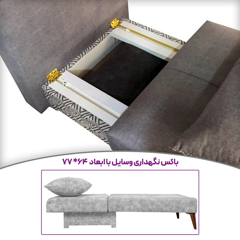 یکی از ویژگیهای منحصر به فرد مبل تختخواب شو کمجا، مکانیزم ریل با دوام آن است که تبدیل مبل به تخت و بالعکس را بسیار آسان میکند. علاوه بر این، این مبل دارای یک باکس مخفی برای نگهداری وسایل مورد نیاز خواب است که به سازماندهی بهتر فضای شما کمک میکند.