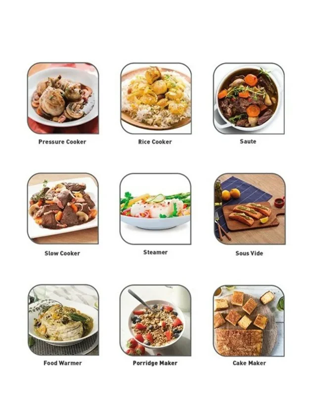 7 عملکرد پخت تحت فشار (برنج سریع، فرنی، گوشت گاو، بره، مرغ، اردک، سوپ، بخارپز)