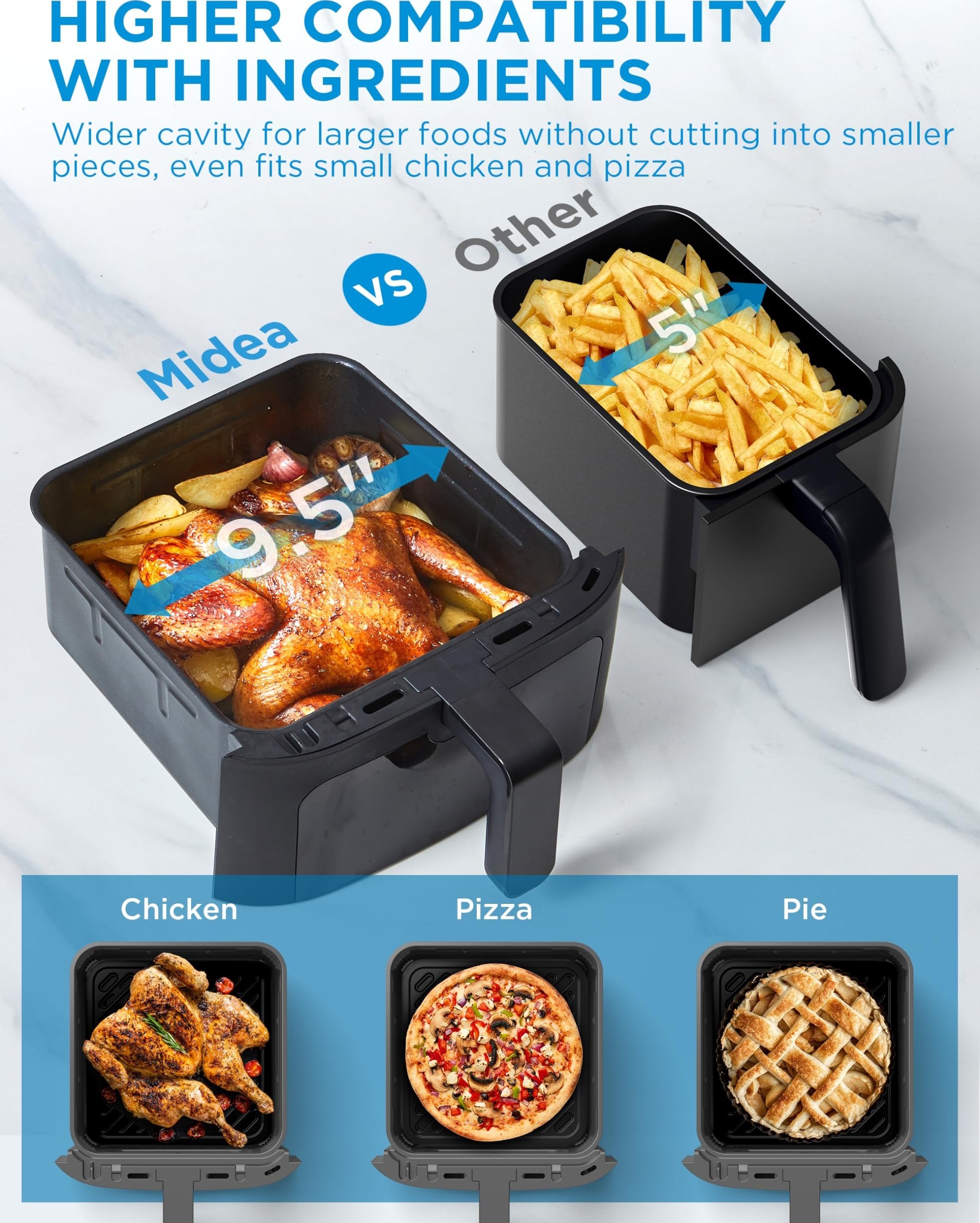 طراحی نوآورانه دو طبقه Midea: Mad -110 D2 apk این سرخ کن هوای دوتایی دارای یک سبد بالای 6QT و یک تابه پخت 5QT پایینی است که ظرفیت بزرگ 11QT را ارائه می دهد اما با طراحی منحصر به فرد خود جای کمتری را اشغال می کند.