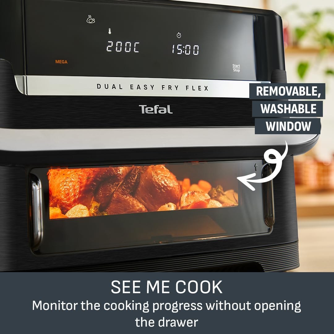 - فلکسکوک آسان: جداکننده نوآورانه فلکسکوک تنها با یک کلیک جا به جا یا باز میشود و فوراً فضای داخلی سرخکن بدون روغن شما را تغییر میدهد، و میتوانید از آن بعنوان سرخ کن دوقلو استفاده کنید و همچنین برای تمیز کردن سریع و آسان پس از هر وعده غذایی، قابل شستشو در ماشین ظرفشویی است.