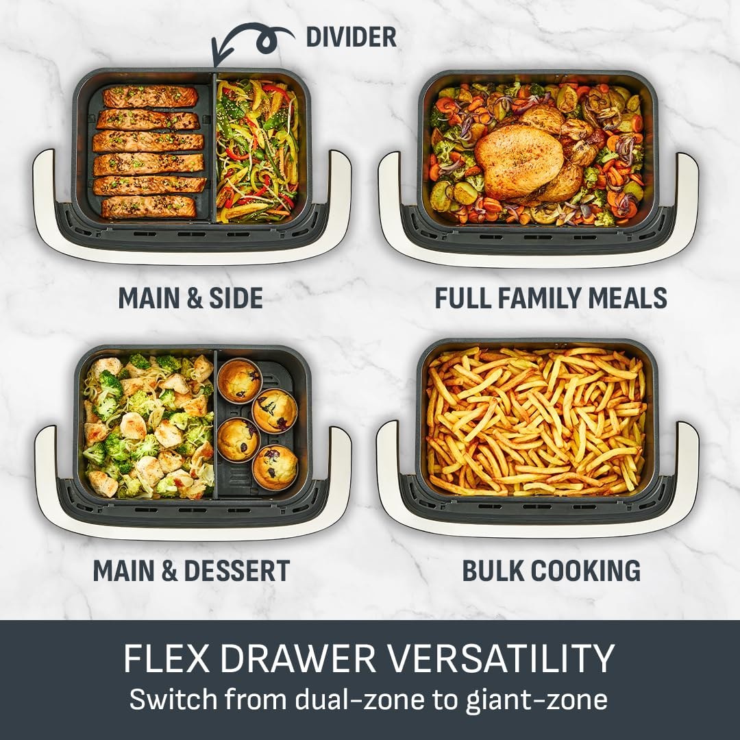 🟣دوگانه یا تکی—یا هر دو: به راحتی بین دو منطقه پخت مستقل (۵.۵ لیتر و ۳.۵ لیتر) جابجا شوید یا آنها را با استفاده از جداکننده FlexCook در یک منطقه بزرگ ۹ لیتری GiantZone ترکیب کنید، که برای تطبیق آسان با هر اندازه یا مناسبت غذایی ایدهآل است.