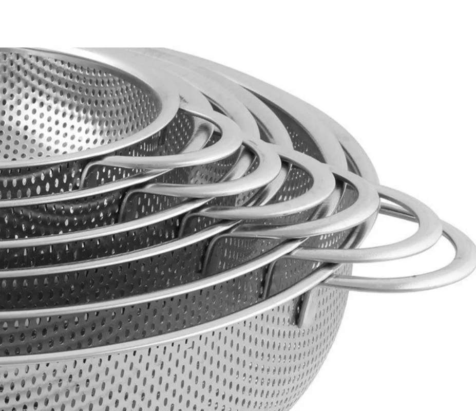 ▪️جنس آبکش ها از استیل درجه یک براق و ضدزنگ می باشد.که طی استفاده نیز به هیچ عنوان اکسید نمی شود و مانند روز اول کیفیت خود را حفظ می کنند. ▪️کنار آبکش ها دسته های بسیار محکمی متصل شده است که استفاده از آن را راحت تر می کند. و همچنین پایه های تعبیه شده در زیر آبکش پانچ باعث می شود که آب داخل مواد غذایی کاملا تخلیه شود.